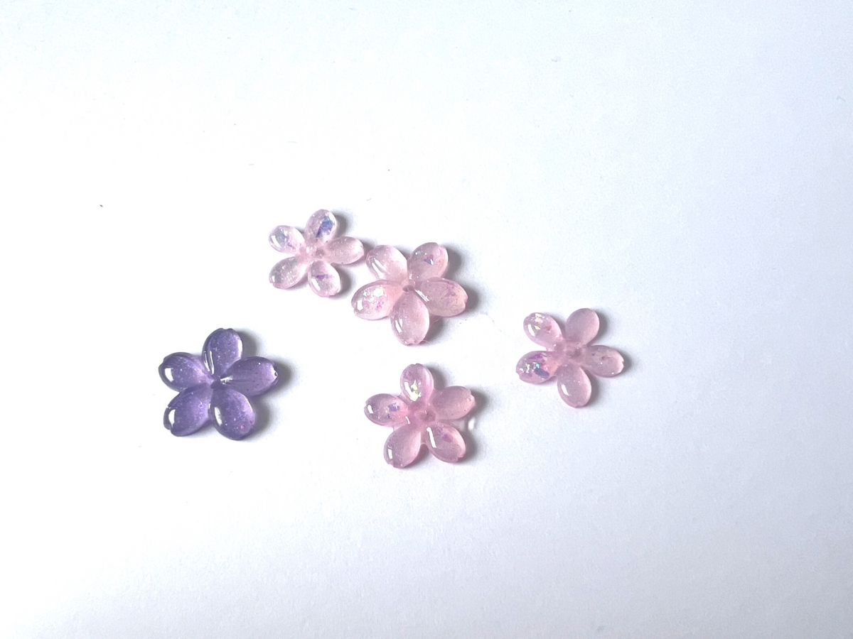 けむこは花とかリボンとかキラキラとかそういう可愛いものが大好きで、普段レジンで作っている作品もそういった可愛い系のものをモチーフにしていることが多いです、というかほぼそうです笑