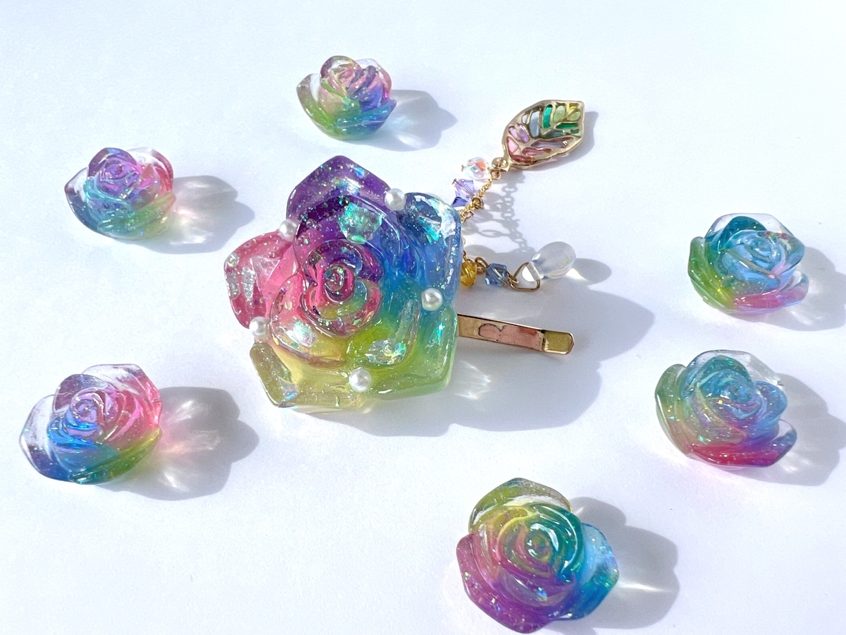 昨年は、花をモチーフにした作品を主に作って来ました。実はCreemaの店の名前を花箱(Flower box)と宝石箱(jewelry box)で悩んで花を取った経緯があるのですが、今年は折角なので、宝石モチーフの作品も取り入れて行こうかなぁと思います。…多分笑