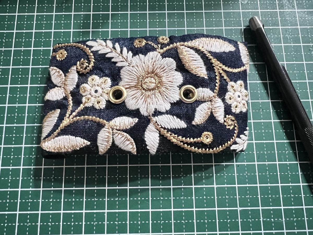穴を開ければこちらのもので、ハトメも無事に付けることが出来ました。