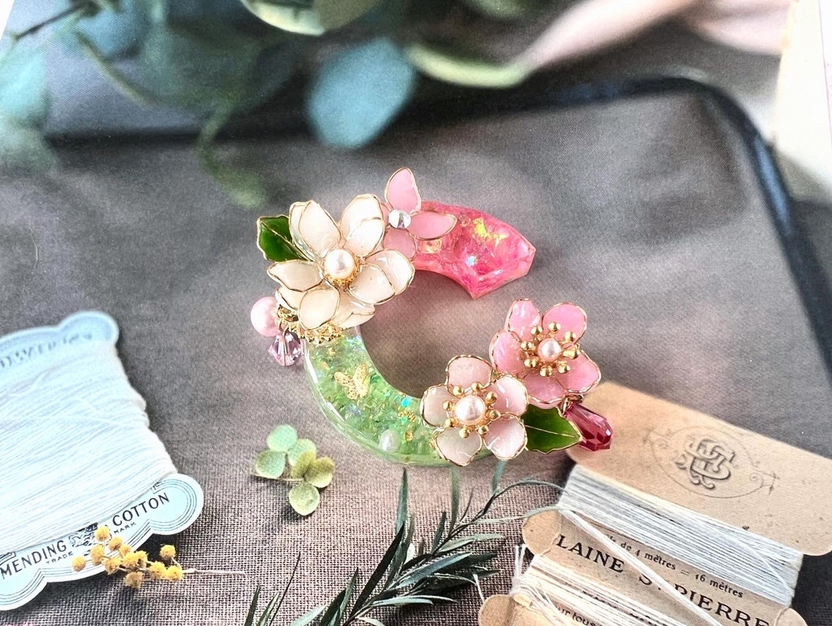 昨年は、花をモチーフにした作品を主に作って来ました。実はCreemaの店の名前を花箱(Flower box)と宝石箱(jewelry box)で悩んで花を取った経緯があるのですが、今年は折角なので、宝石モチーフの作品も取り入れて行こうかなぁと思います。…多分笑